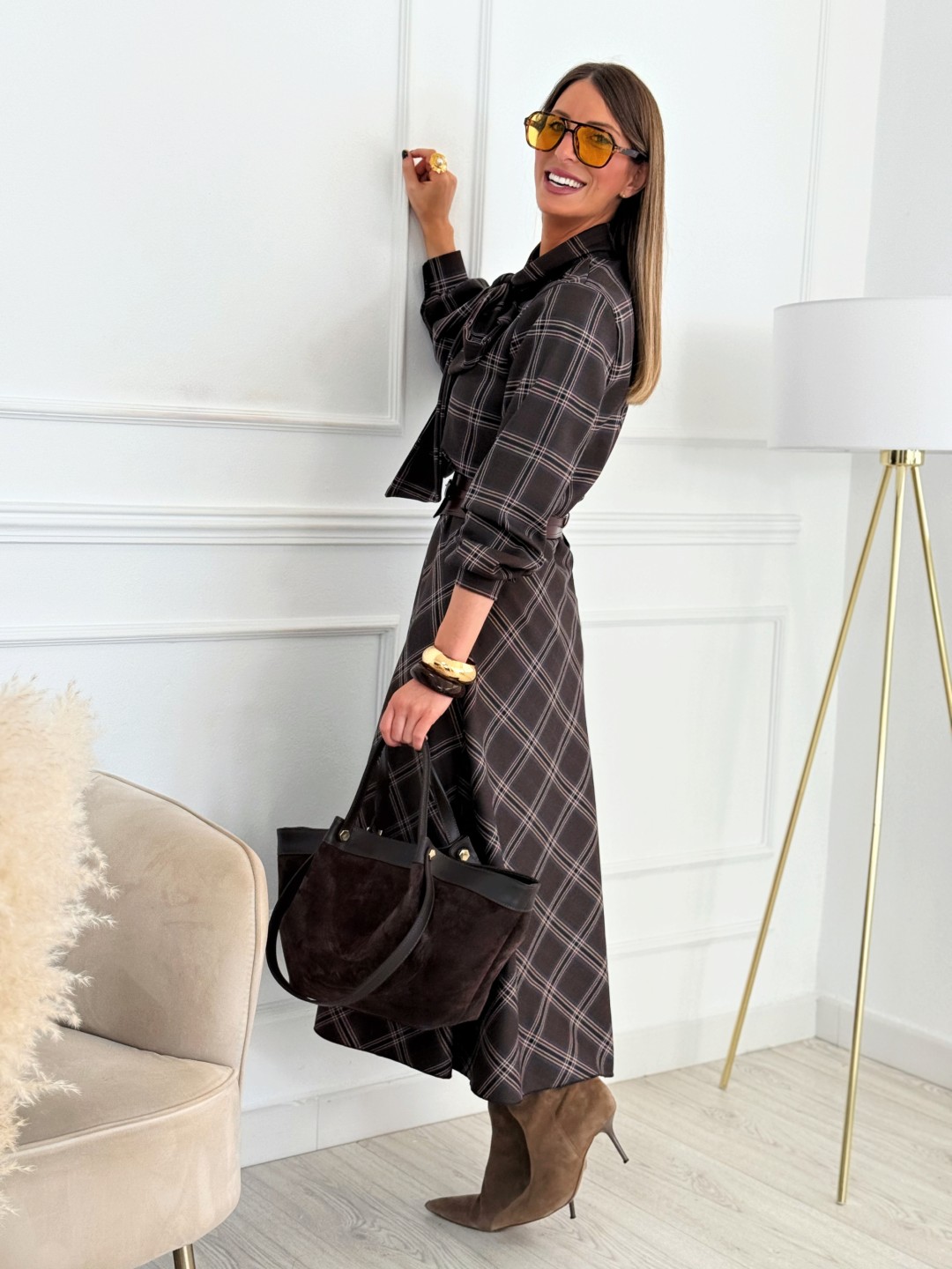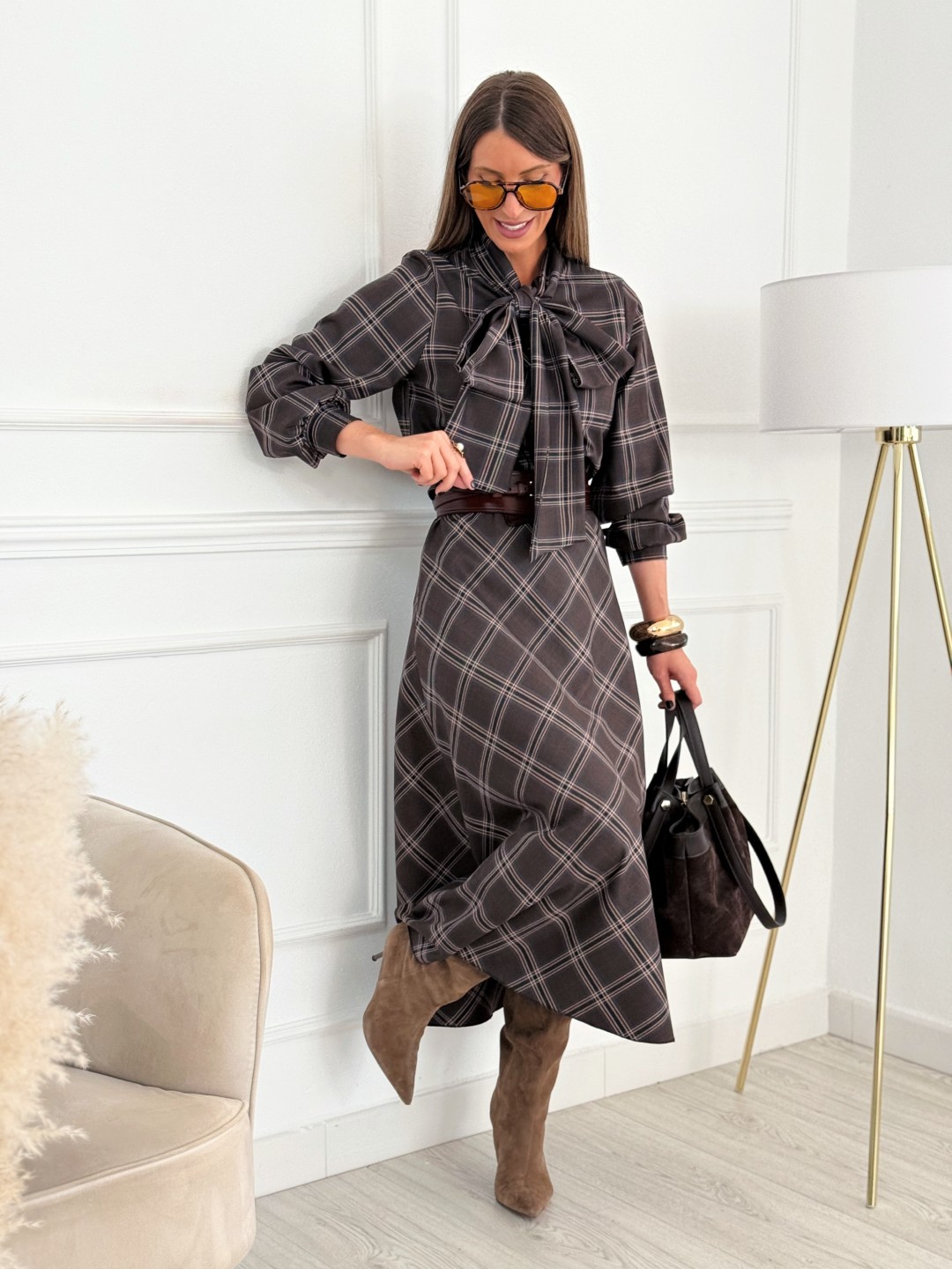 Esta blusa de cuadros con lazada es un imprescindible en el armario femenino por su estilo clásico y refinado. Confeccionada en un tejido ligero y fluido, presenta un diseño con lazada al cuello que aporta un toque chic y femenino. Su corte recto y holgado ofrece comodidad sin perder elegancia, mientras que el estampado de cuadros aporta un aire sofisticado y versátil. Perfecta para combinar con faldas, pantalones de vestir o jeans, es ideal tanto para looks de diario como para ocasiones más formales.
