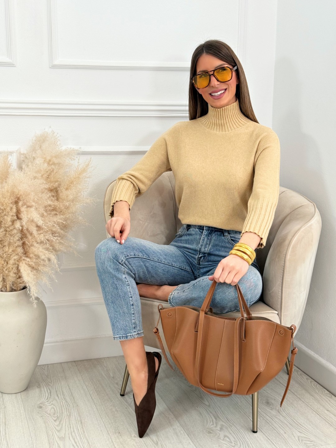 Combínalo con vaqueros, pantalones en tonos beige, marrón o blanco para un look elegante y natural. Ideal tanto con zapatillas para un estilo casual como con botines o tacones para un conjunto más arreglado.