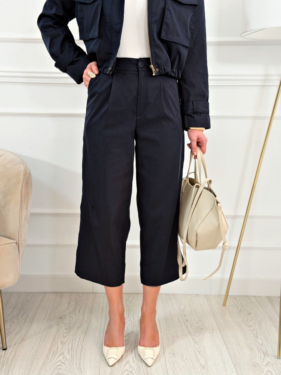 Perfecto para combinar con la chaqueta a juego y crear un conjunto elegante y actual. También queda ideal con camisetas o tops en tonos blancos, crudos o beige para un look equilibrado y sofisticado. Puede llevarse con zapatos de tacón, sandalias o incluso zapatillas para adaptarlo a diferentes estilos y ocasiones.