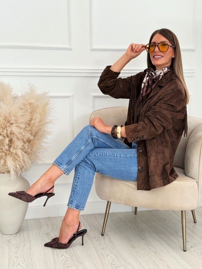 Un calzado imprescindible que combina fácilmente con jeans rectos, pantalones de pinzas o vestidos midi. El tono chocolate aporta calidez y sofisticación, ideal para coordinar con tonos beige, camel, negro o estampados animales.